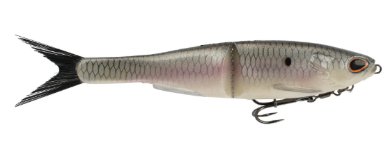 • Isca de pesca artificial articulada branca com cauda preta e anzóis