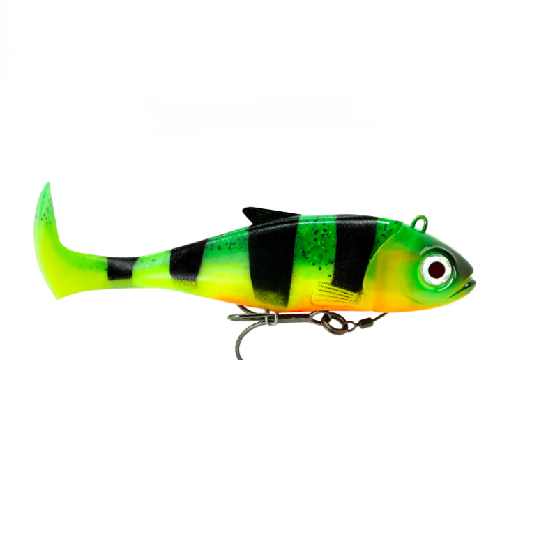 • Isca artificial de pesca em forma de peixe com cauda curvada e anzol triplo
