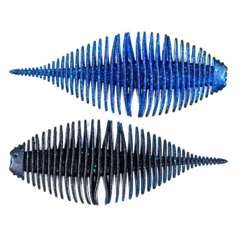 Seu corpo é estriado da cabeça à cauda e as costelas dão à isca uma sensação natural quando o peixe se agarra. Eles movem mais água e criam mais ondas com o deslocamento da água e fornecem uma ação natural e viva.