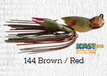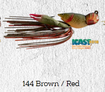• Isca de pesca spinnerbait castanho e vermelho com selo ICAST 2018