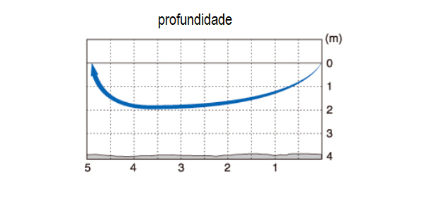 • Gráfico de profundidade com curva azul e marcações em metros