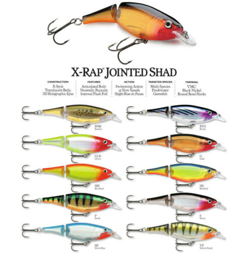 Com seu corpo articulado, o X-Rap® Jointed Shad produz um movimento exagerado de natação, às vezes apenas o bilhete para ativar peixes lentos. Lançar ou trollar, uma ação impressionante começa na sua velocidade mais lenta. Corra rápido com ações igualmente fantásticas. A flutuabilidade quase neutra com um ligeiro aumento na pausa imita perfeitamente o peixinho ferido. Acabamentos texturizados internos e papel holográfico, os olhos holográficos 3D se combinam para criar uma verdadeira máquina de captura de peixes. Ganchos de níquel preto VMC® premium. Ajustado à mão e testado em tanque, perfeição imediatamente.