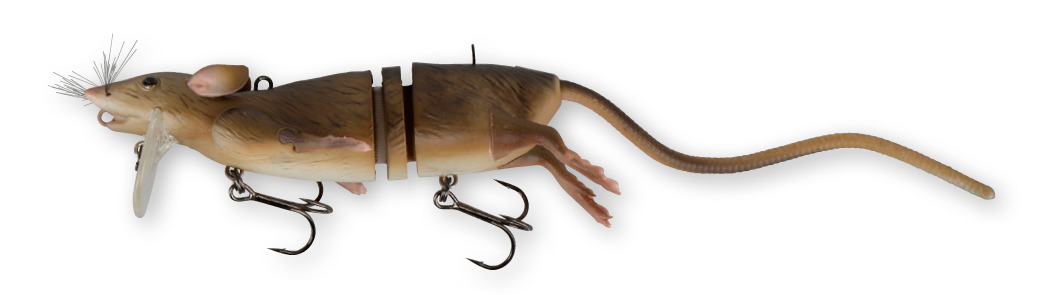Corpo duro em ABS ultra-resistente, junção em nylon com pés e orelhas macios. Anexar a atração no Bill / lábio e pescar no topo, como um rato nadando com um grande acordar e sub superfície rolando ação S-curva. Anexar a isca no nariz e vai mergulhar e nadar super realista sob a superfície - fazer um spinstop ea isca vai aparecer em linha reta até o topo, com sua alta flutuabilidade - uma maneira brilhante de realmente provocar ataques loucos. O tamanho grande, pode ser pescado através de áreas cheias de ervas daninhas e escarpadas com um ferrão e um gancho agudos presos nas costas. As orelhas macias, pés e cauda, ??realmente define um novo padrão para uma isca imitação de rato. A cauda é reforçada com um núcleo de trança e encaixa no corpo com um design de clipe inovador e inteligente - que facilita a troca.