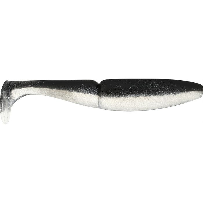 • Isca de pesca macia bicolor prateada e preta com cauda em forma de pá