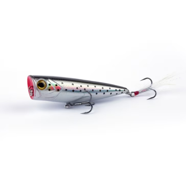 A  Pure Pop da linha Yasei é uma isca de superfície de alto impacto, projetada para atrair peixes grandes com seu apelo irresistível na superfície. Ela oferece duas técnicas distintas de recuperação: puxões suaves e regulares geram uma ação de "Passear com o Cachorro", enquanto puxões mais agressivos resultam em um movimento intenso de estalo que atrai os peixes com resultados emocionantes. Disponível nos tamanhos 60 mm (6,5 g) e 80 mm (12 g) em cinco cores atraentes.