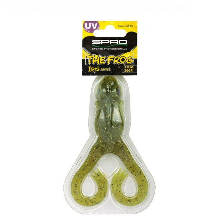 Uma imitação realista de um sapo real, feito de um material macio. ÍRIS O sapo tem uma ação muito sedutora. Em uma recuperação muito lenta, as pernas do sapo já começam a se mover. Os indicadores de tamanho do gancho na parte traseira facilitam muito o equipamento. Por exemplo, em combinação com nossos Jigheads SPRO (# 6/0 ou # 8/0). Além disso, essa imitação de sapo é perfeita para pescar com Gamakatsu Offset ou Wormhooks maiores.