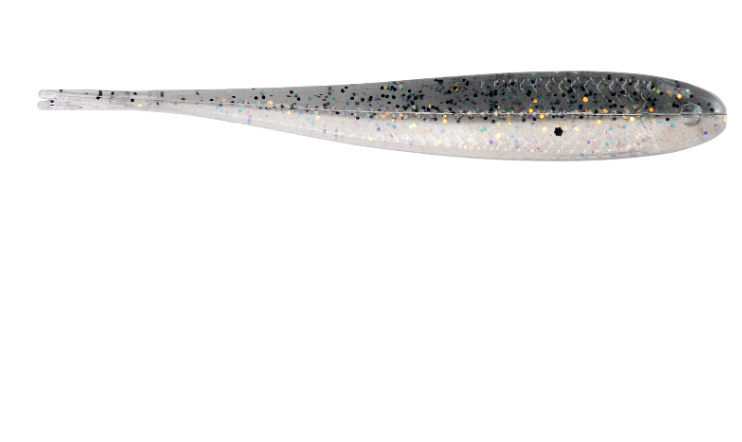 • Isca artificial translúcida com brilhos pretos e duas pontas na extremidade inferior