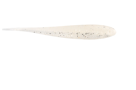 • Isca artificial de silicone branca com partículas pretas e prateadas.