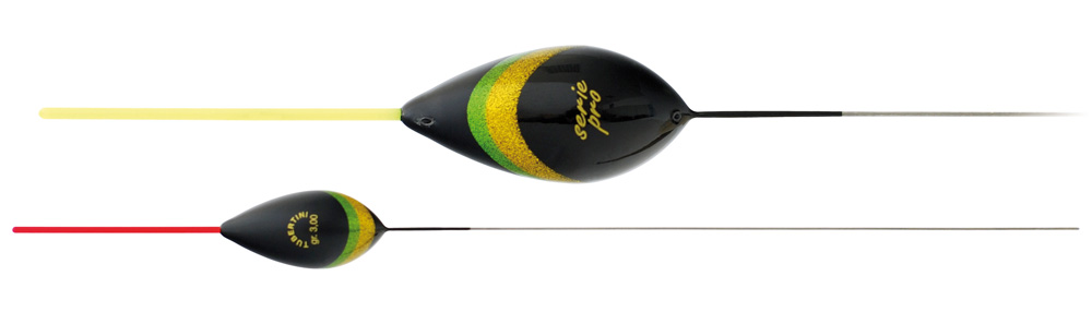 • Dois bóias de pesca preto, amarelo e verde com hastes fina amarela e vermelha