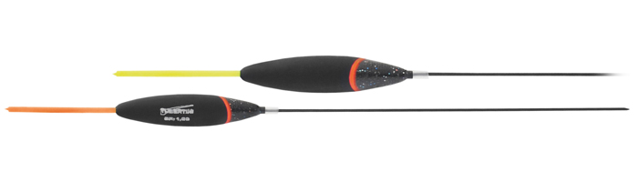 Flutuador de fio central com deriva de fibra de vidro e antena oca colada integral com a própria deriva. Forma alargada muito versátil. O diâmetro do orifício de passagem permite o uso de diâmetros de até 0,25 mm.