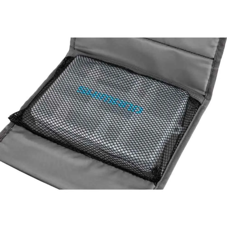 • Bolsa cinzenta para ferramentas com alça preta e logo SHIMANO