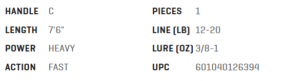 • Tabela de especificações técnicas de vara de pesca