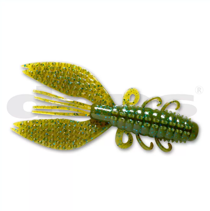 O corpo robusto com suporte de ar oco e as garras espinhosas que vibram poderosamente ao afundar e nadar atraem o bass com sua ação espontânea e presença imponente. Além disso, a vibração traseira, que impulsiona a água com força ao cair com o ar na cabeça do corpo, é extremamente eficaz para a captura de bass grandes.