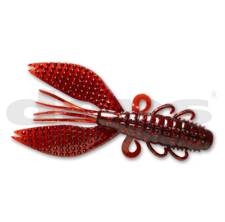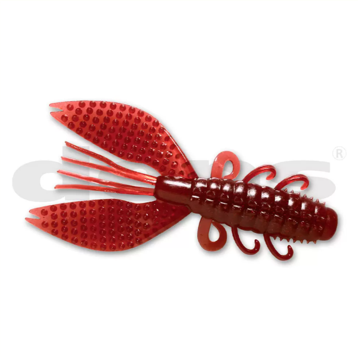 • Isca de pesca artificial vermelha em forma de lagosta com textura pontilhada