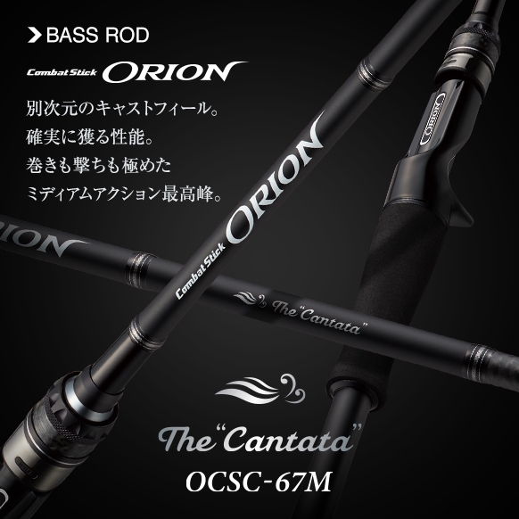 • Cana de pesca preta ORION Combat Stick The Cantata OCSC-67M com texto em fundo preto