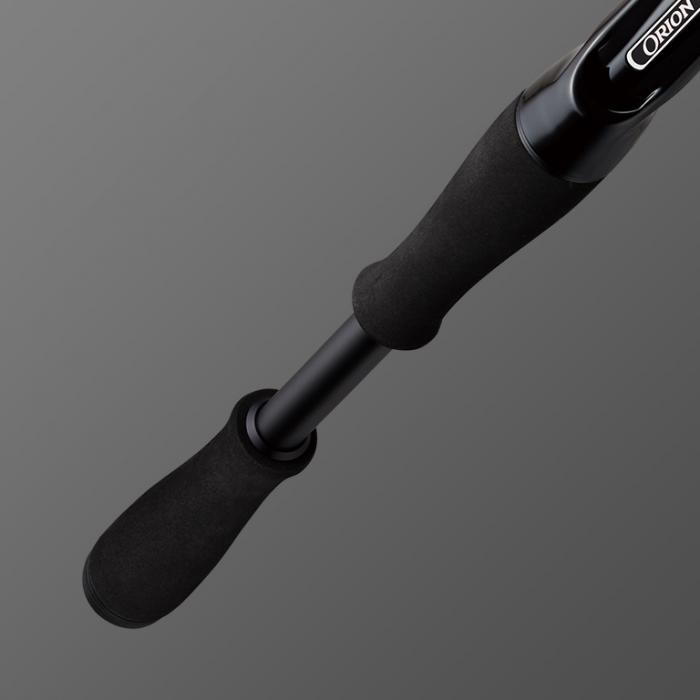 • Punho preto de espuma de vara de pesca com logo ORION em fundo cinzento