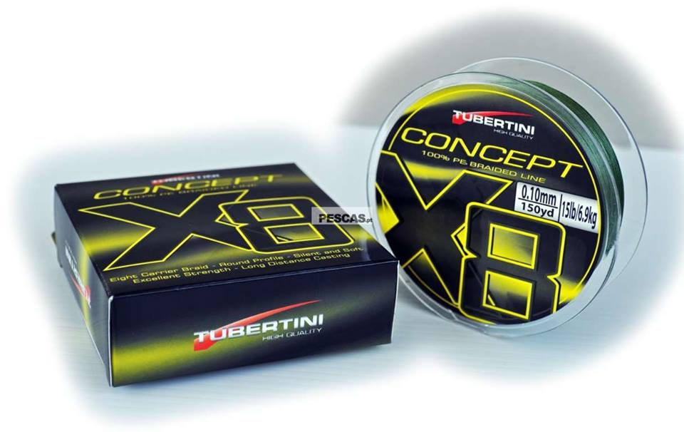 Linha de pesca Tobertini Concept X8 embalagem preta e amarela.
