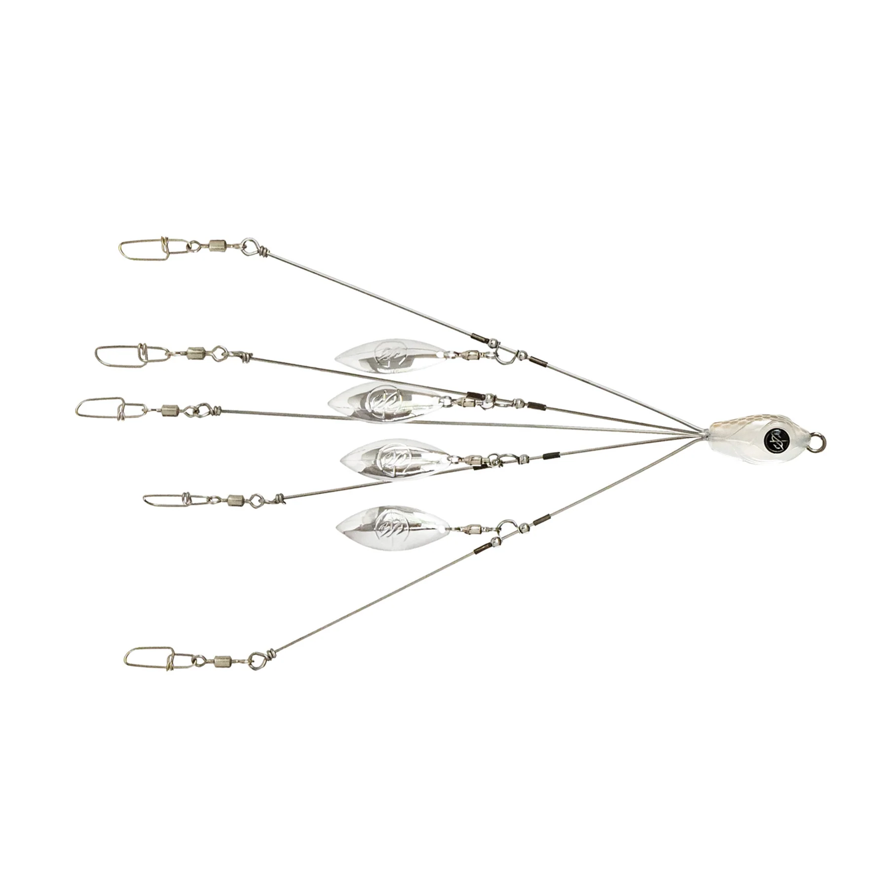 Todos a bordo! Os bass estão prontos para pegar uma carona no Googan Squad Shad Wagon. Disponível em configurações de 5 braços, com e sem lâminas, o Shad Wagon foi projetado pensando no pescador. Cada equipamento é construído com giros de encaixe de 80 lb. e fio de aço flexível de 1,1 mm pré-dobrado, facilitando o equipamento e a montagem para você. Ele também é embalado em um tubo transparente que simplifica o armazenamento de longo prazo em seu barco ou bolsa de equipamentos. Não há necessidade de comprar armazenamento extra para seus equipamentos de guarda-chuva. Combine este equipamento com Saucy Swimmers , e você terá uma configuração pronta para capturar os maiores robalos em seu corpo d'água.
