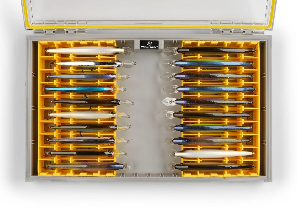 Armazene e proteja até 20 iscas individuais, mantendo os anzóis e o acabamento da sua isca em perfeitas condições! O anel de vedação estanque Dri-Loc mantém a impermeabilização quando fechado; o divisor WaterWick com um pacote que absorve umidade protege tanto os gabaritos molhados quanto os secos. Possui um sistema EZ Label para fácil organização e uma tampa de policarbonato transparente DuraView que permite identificar rapidamente o conteúdo. A tecnologia de prevenção de ferrugem Rustrictor oferece 360 graus de proteção contra ferrugem e umidade para suas iscas. Construído com dobradiças de pino de aço e uma trava de uma mão para abertura e fechamento seguros, mantendo tudo em seu lugar. Dimensões: 35.6cm x 22.9cm x 4.8 cm