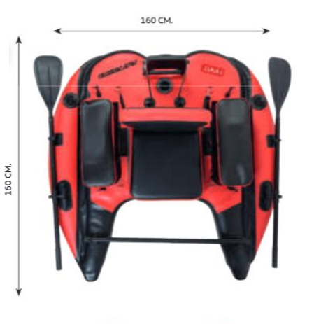 Pato híbrido feito de PVC 1.200 Denier. É reforçado com uma folha de PVC adicional para evitar danos à superfície e obter maior resistência e durabilidade. O interior desta estrutura é composto por uma estrutura de malha rígida de poliéster que retém o ar, dá corpo à estrutura e evita que fique redonda como uma bola quando inflada, conseguindo um pato muito menos volumoso e com mais espaço útil do que os patos tradicionais. Graças a esta construção, o pato pode ser inflado a uma pressão muito maior do que um pato de PVC padrão, atingindo até 15 PSI (1,03 bar) no máximo. Combinando todas essas características, obtemos um pato mais resistente, rápido e navegável e com mais capacidade de carga do que um pato de PVC padrão. Vem equipado com assento de alta pressão, bolsos de PVC rígido de grande capacidade, barra de reforço de alumínio e remos. Também possui suporte traseiro para motor elétrico e barbatanas para melhorar a estabilidade e a manobrabilidade. Fornecido com bomba de pé de alto fluxo e bolsa de transporte.