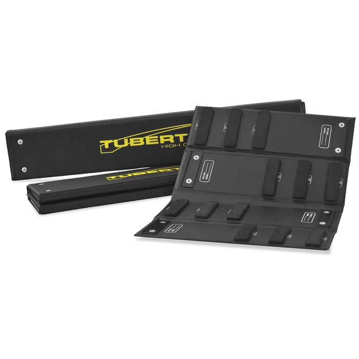 Carteira em forma de carteira composta por quatro compartimentos para alojar as terminações preparadas com ranhuras. Disponível em três tamanhos diferentes.