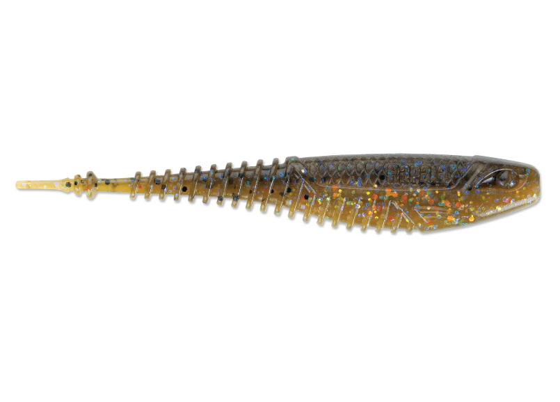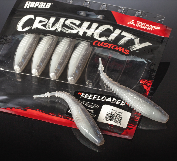 O Freeloader™ é a amostra que você deseja acompanhar no passeio em seu spinnerbait, chatterbait  ou para pescar na vertical. As ranhuras da barriga e do anzol superior ajudam a ajustar a isca em linha reta e a ranhura do anzol superior ajuda a esconder a ponta do anzol. Os anéis da cauda proporcionam uma isca que atrai uma ação sutil.