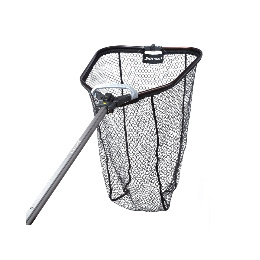 A rede de pouso dobrável média Shimano Yasei Rubber Net  apresenta um design de tamanho médio, com malha de borracha para preservar a condição dos peixes e evitar o emaranhamento do anzol, uma alça e pode ser facilmente dobrada para transporte.