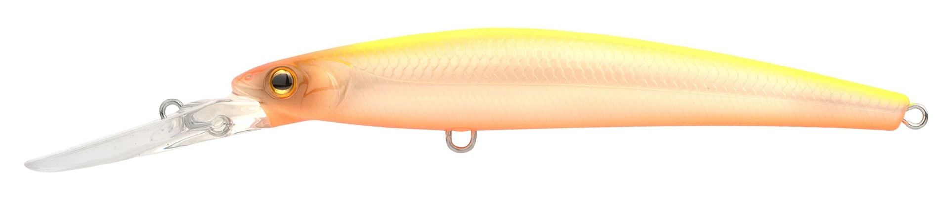 • Isca de pesca jerkbait amarela e laranja com palheta translúcida