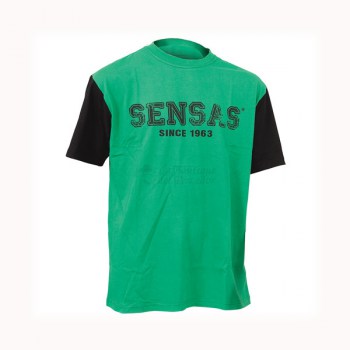 T-shirt verde com mangas pretas e texto SENSAS SINCE 1963